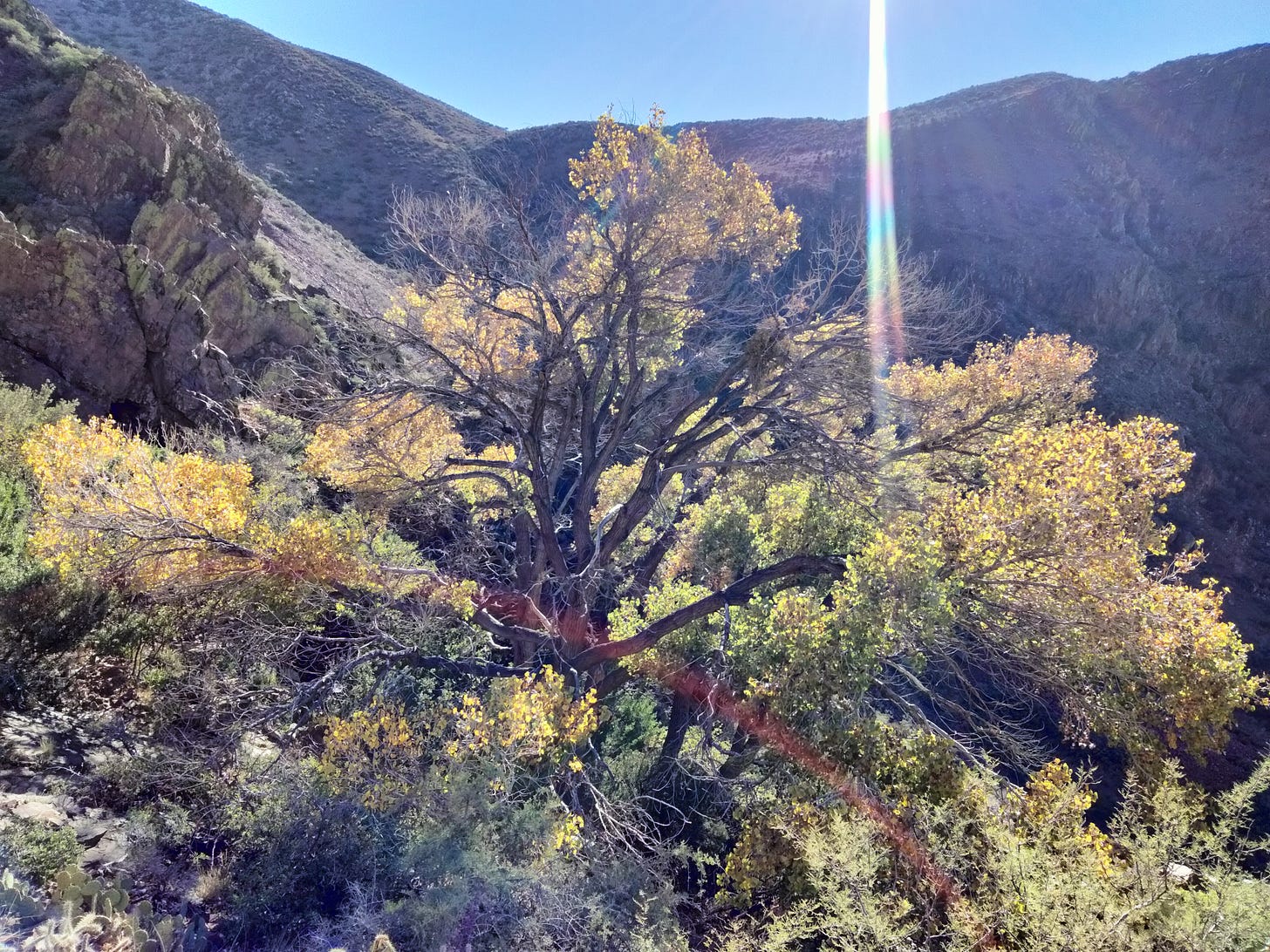 But I strive for abundance over fear. You’ve got to be ready for the things you can’t see, but also the things you don’t pay attention to. I try to make it a point when I am hiking to notice something that is on the surface unremarkable. And there’s a lot out there to choose from. Tiny flowers, camouflaging insects, or a bird very high in the sky that is just surfing a wind current, effortlessly.